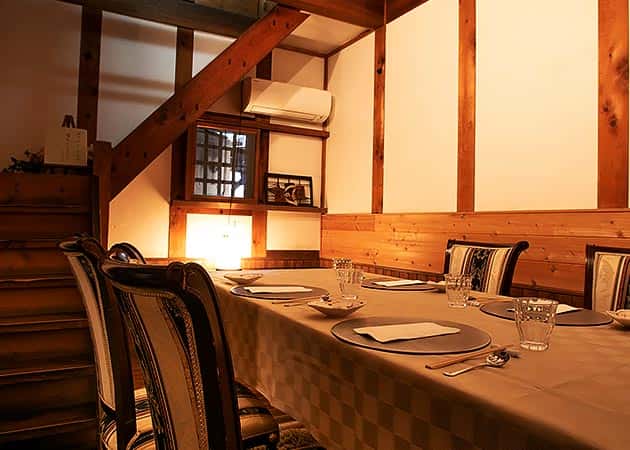 国の登録有形文化財に登録されている【旧奥村邸】を改装した店内で、箸で食べられるフレンチをお召し上がりください。